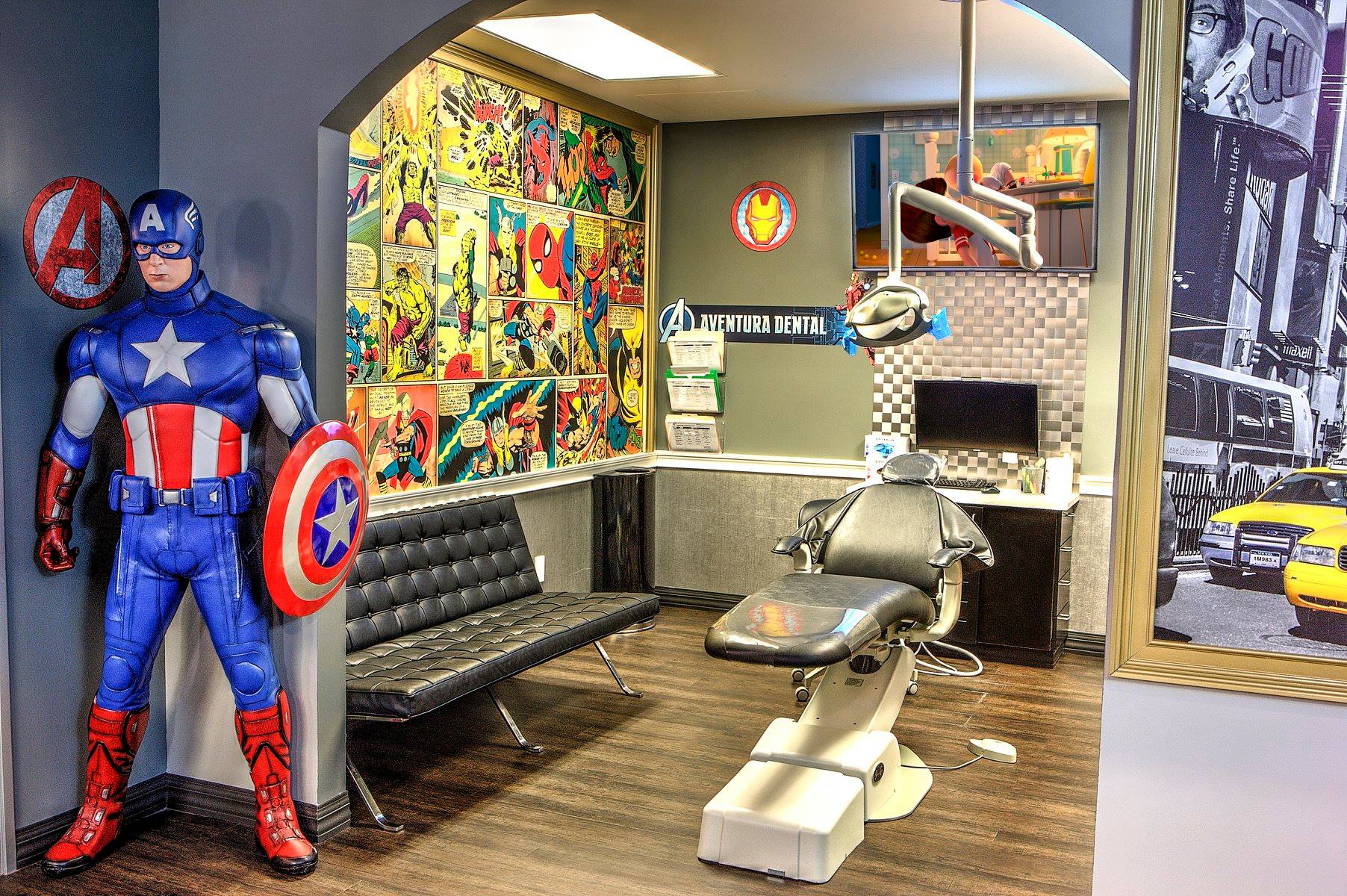 We invite you to take a virtual tour of our state-of-the-art dental office. At Aventura Dental, we've invested heavily in ensuring that our practice is equipped with the latest and most advanced dental technology. From our superhero-themed lobby to our treatment rooms, every corner of our office is designed to make you feel comfortable and at ease. Visit us at